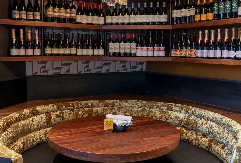 A custom graphic wallcovering developed to elevate the guest experience, scaled to the architecture and produced for durability within a luxury tasting setting.
