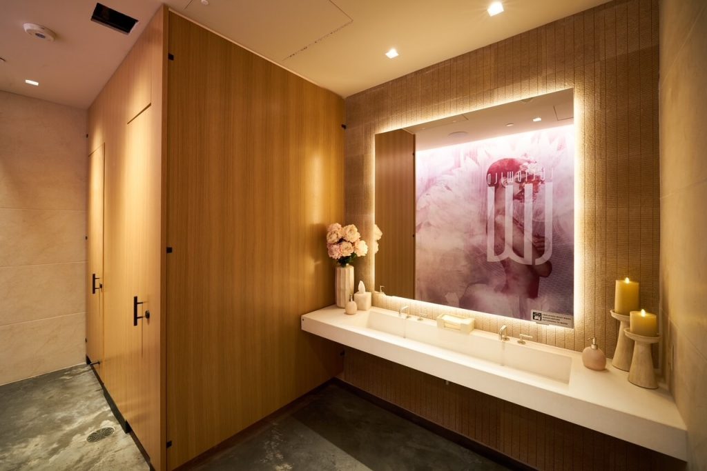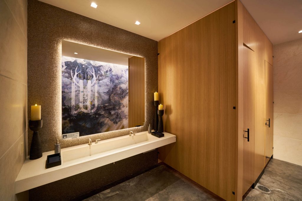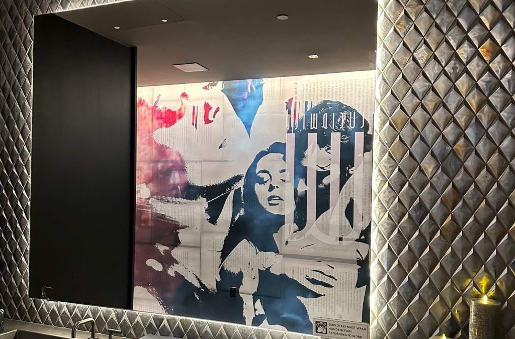 Custom graphic wallcoverings designed to elevate the guest bathroom experience, printed on commercial-grade substrate to deliver bold visual impact with hospitality-level durability.